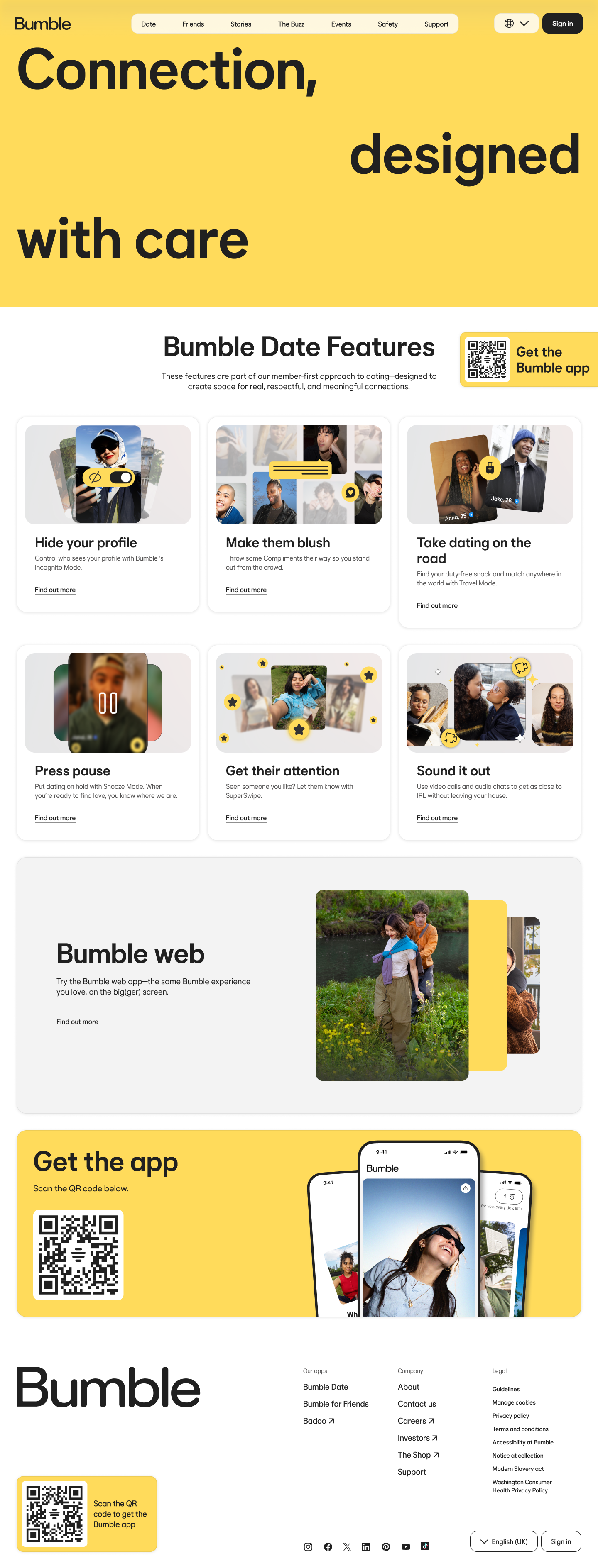 The Brief: Weave in Bumble’s updated mission while spotlighting new campaigns like Love Stories and product feature pages, making the website clearer, crisper, and elevated.